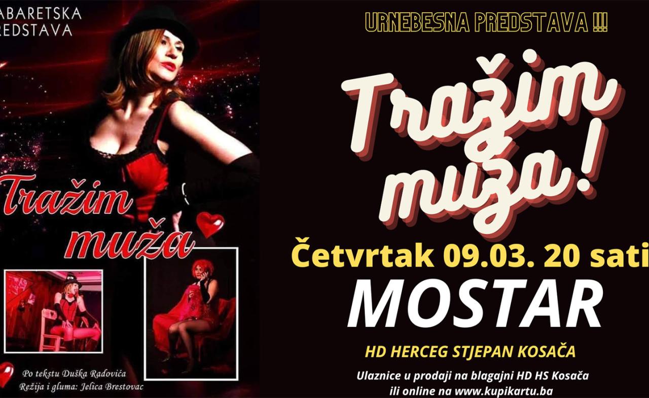 Sjajna glumica Jelica Brestovac sa svojom HIT komedijom pred mostarsku publiku stiže večeras od 20 sati u veliku dvoranu Hrvatskog doma herceg Stjepan Kosača.