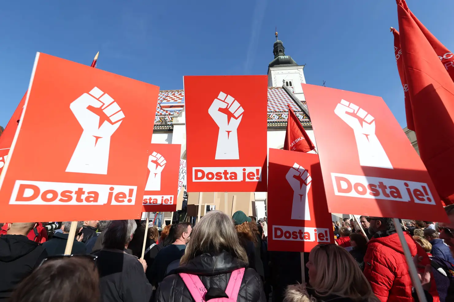 Jučer je na Markovom trgu u Zagrebu održan predizborni skup ljevičarskih stranaka s istaknutim simbolima iz komunističkog doba.