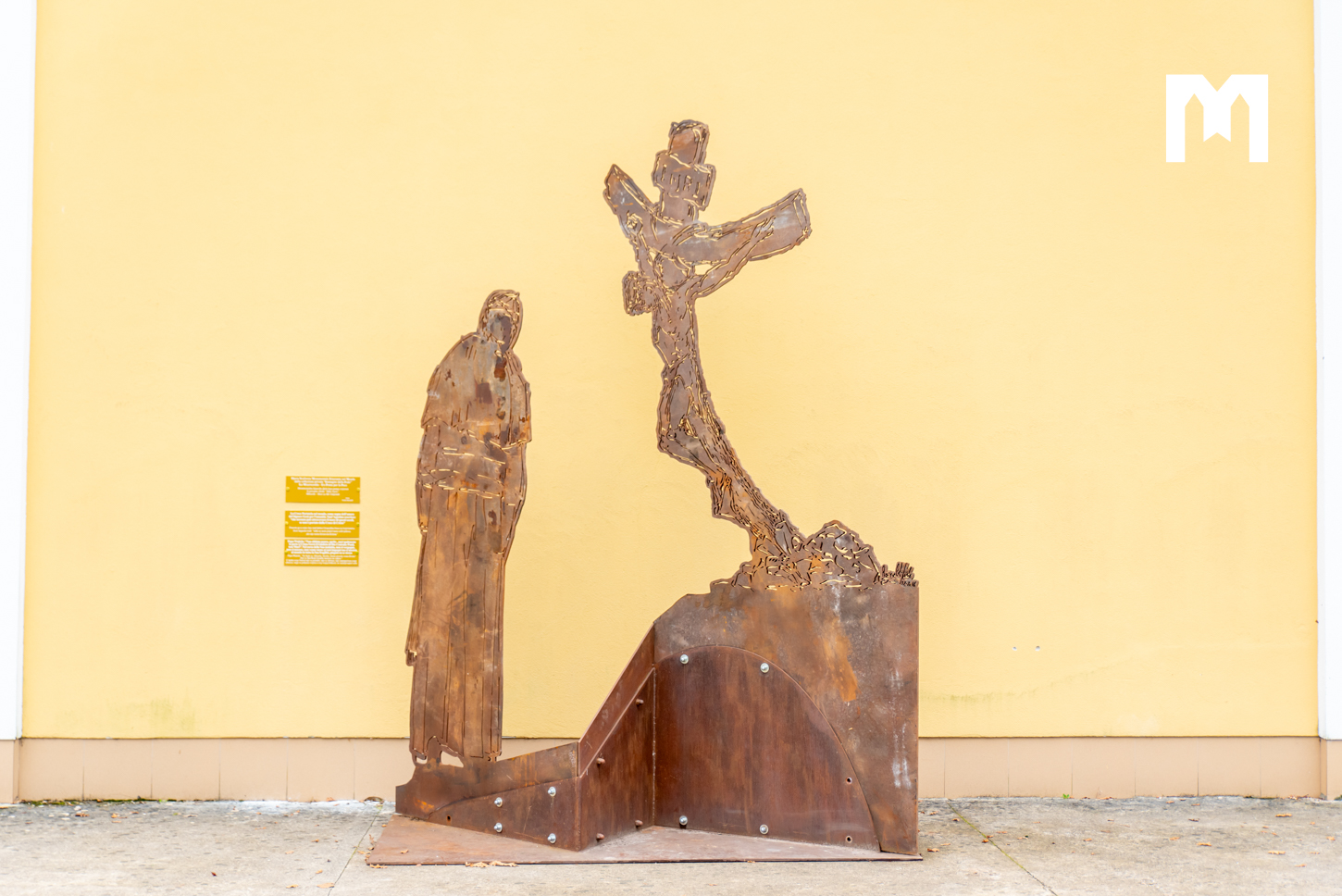 Kako sam autor u opisu ovoga djela kaže, spasenje dolazi po križu i raspetom Kristu. Sjećanje na njega je posvuda, na zidovima crkvi i škola, na vrhovima zvonika, uzglavljima kreveta i iznad grobova, svi ti milijuni križeva podsjećaju na smrt Isusa na križu. Raspelo je znak ljudske boli. Ne znam ni za jedan drugi znak koji daje tako snažan osjećaj naše ljudske sudbine. Raspelo je dio svjetske povijesti. Lik pape Ivana Pavla II. uvijek je bio nadahnuće umjetnicima u davanju svojevrstnosti umjetničke interpretacije, više ili manje “istinite”, ljudskosti pape Wojtyle, njegove iznimnosti, karizmatičan, s mnogo talenata, “Petar našeg doba”. Bio je primjer istine, vjere, nade i ljubavi, primjer ne samo vjernicima, već još više neizvjesnima, moralni oslonac suvremenom svijetu i odraz Božje ljubavi. Obje figure uspoređuju se u konkretnosti i specifičnosti likovnog jezika. Ne trebaju im uvod ni prijevodi, oni pripadaju univerzalnom jeziku, postavljaju se upravo u perspektivu univerzalnosti, u mogućnost izražavanja, sugeriranja, horizonti osjetljivosti, refleksije, apstrakcije. Zbog toga je “sveta umjetnost” uvijek uspostavljala osebujan i pravovremen dijalog sa svetošću, s religioznošću, uz duhovnost i transcendenciju ponovno se potvrđuju vrijednosti i postavljaju novi temelji za nova znanja i prihvaćanje onoga što ne možemo znati. Izraz umjetnika i dojam promatrača mjere se u poruci kiparskog djela. Skulpturalno djelo nas poziva da ga ne promatramo kao predmet potrošnje, već kao dar u kojemu treba uživati kontemplativan pogled. Svaki umjetnik, u različitoj tišini srca, pozdravlja misterij ljudskog života i izražava ga svojim oruđem njegova jezika. Dvije posebno značajne figure koje predstavljaju povijest, prošlost, kolektivno sjećanje, vjeru.