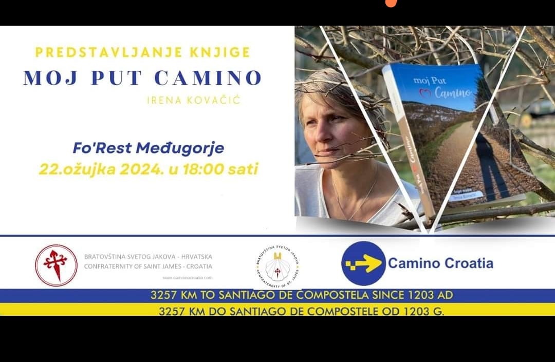 U petak, 22. ožujka 2024. godine u 18h, na lokaciji Fo’Rest Međugorje, Udruga Bratovština svetog Jakova organizira promociju knjige autorice Irene Kovačić pod nazivom “Moj put – Camino”.