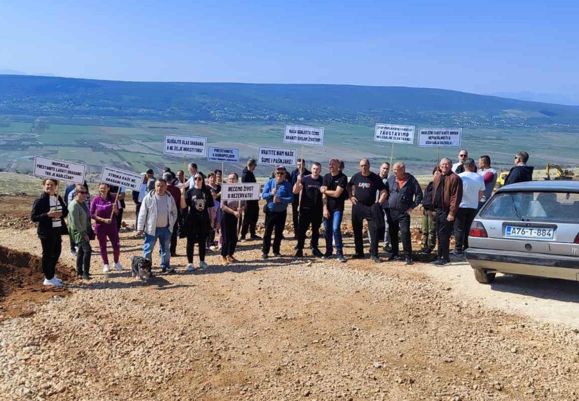 50-ak mještana sedam mostarskih naselja okupljenih u Neformalnu grupu građana „Zaustavimo nezakonite izmjene Prostornog plana u Mostaru“ u subotu 23. ožujla su održali prosvjed u naselju Međine.