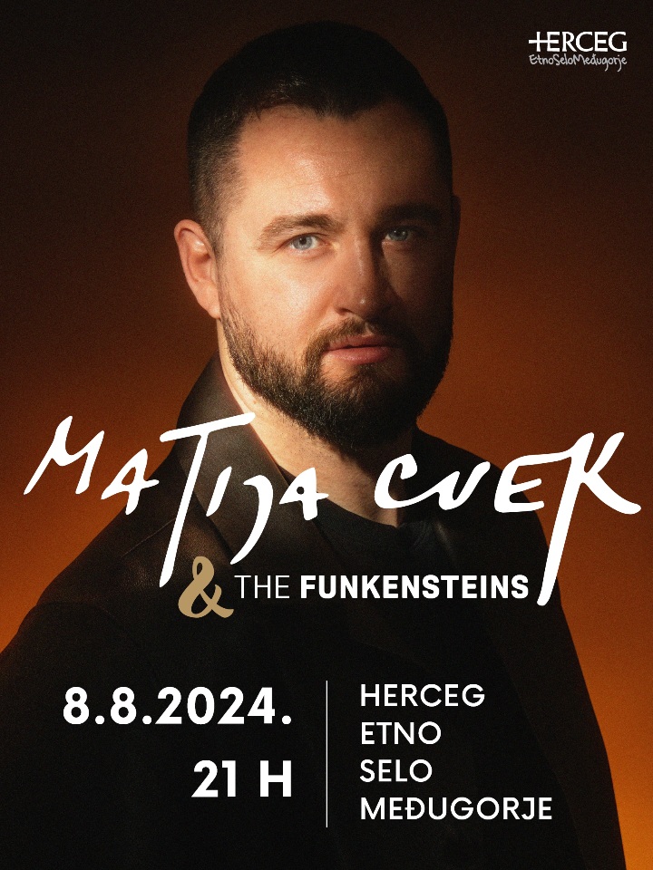 Matija Cvek & The Funkensteins- grooveri svjetske klase 8. kolovoza 2024. prvi put stižu i na najljepšu hercegovačku pozornicu- amfiteatar Herceg etno sela u Međugorje.