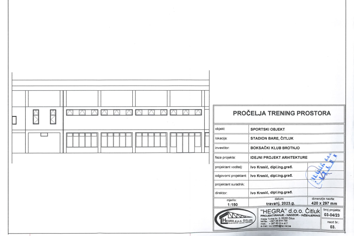 Iz Uprave kluba pozivaju sve zainteresirane sponzore, prijatelje kluba i potencijalne pokrovitelje da potpomognu realizaciju projekta kako bi se radovi dovršili u što kraćem roku – priopćeno je iz Boksačkog kluba „Brotnjo“ Čitluk.
