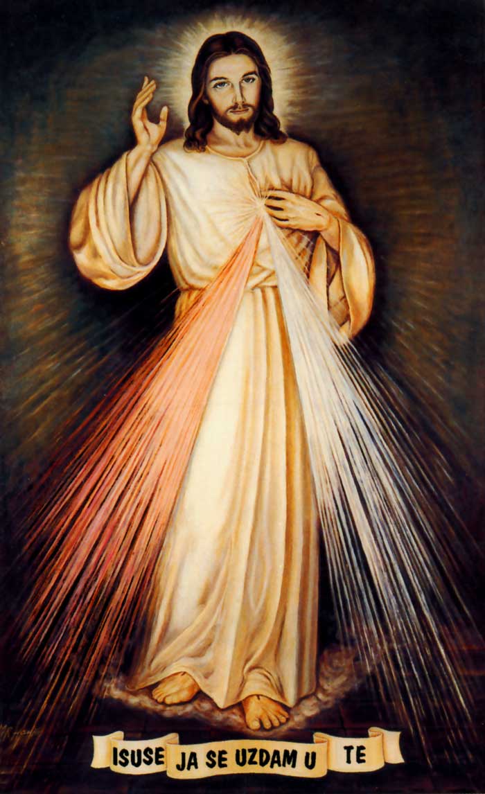 Njihovo širenje označava prelijevanje Božjega milosrđa na cijeli svijet. Ispod slike piše: ”Isuse, uzdam se u Tebe”.