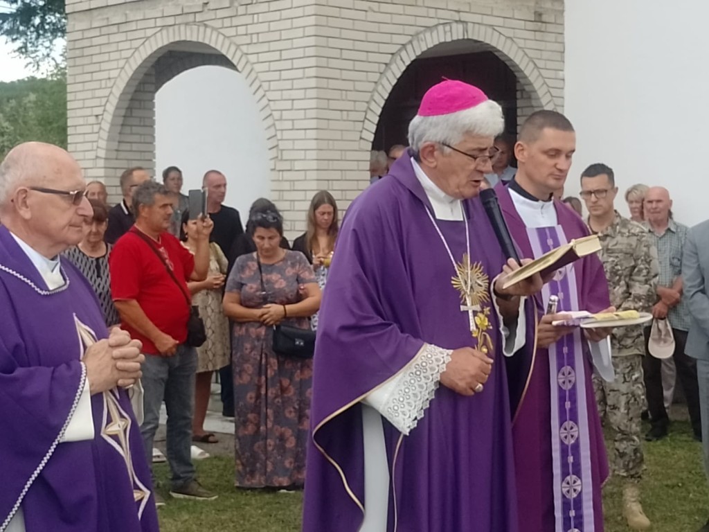 “I danas, unatoč tomu što je selo spaljeno, prognano, raseljeno; što su u samom selu i župi, kao uostalom u cijelom ovom kraju, ostali još rijetki, mi smo tu na ovom svetom tlu. Iako je ispred nas tužna slika posljedice razaranja, mi pristupamo ovom mjestu zahvaćeni plamenom ljubavi koji se, Bogu hvala, i nakon 32 godine nije ugasio; plamen ljubavi prema nevino ubijenima, plamen koji ubija u nama svaki osjećaj mržnje i želje za osvetom; plamen zahvalnosti dobromu Bogu koji je vidio nevolju svoga naroda, kojemu je sve znano i koji je, čvrsto vjerujemo, primio žrtvu svoga naroda; Bogu istine i pravde pred koga će svatko stati te onima koji su u svom nasilju smatrali da su svemoćni ‘neće ostati ni korijena ni grančice’, a onima koji su u vatri, muci i krvi pročistili svoje živote, bojali se Boga, zasjat će kao ‘sunce pravde‘“, kazao je mons. Željko.