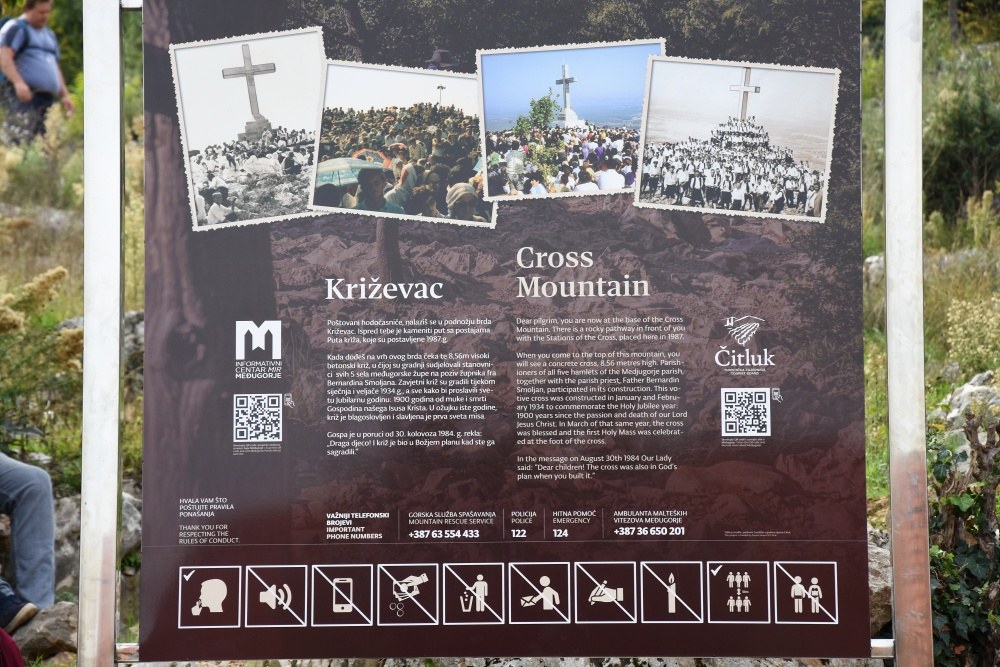 Turistička zajednica Općine Čitluk danas je postavila info ploče na ključnim lokacijama u župi Međugorje u okviru kapitalnog projekta za tekuću godinu. Ove info ploče postavljene su na sljedećim lokacijama: Brdo ukazanja, Križevac i Plavi križ.