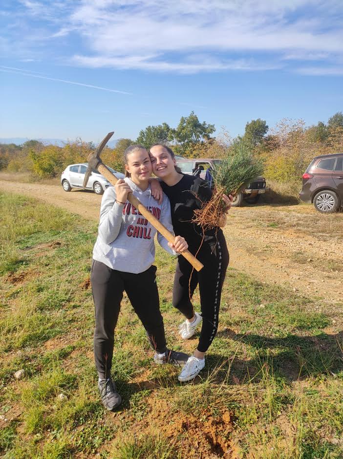 ravnatelja Pere Petrušića i pedagoginje Marije Prusina, s ponosom su zasadili 1200 novih