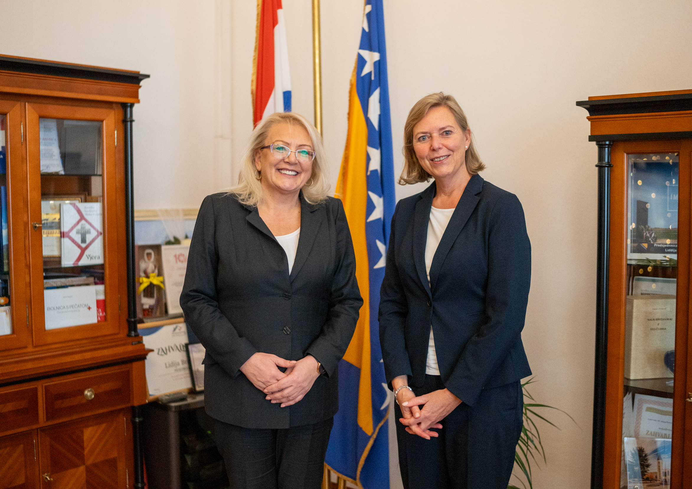 Predsjednica Federacija BiH Lidija Bradara jučer je u svom uredu ugostila veleposlanicu Kraljevine Norveške u BiH Kathrine Biering. Sastanak, održan u prijateljskom i konstruktivnom ozračju, bio je posvećen razmjeni mišljenja o ključnim političkim i društvenim izazovima Federacije BiH te mogućnostima jačanja suradnje Bosne i Hercegovine i Norveške.