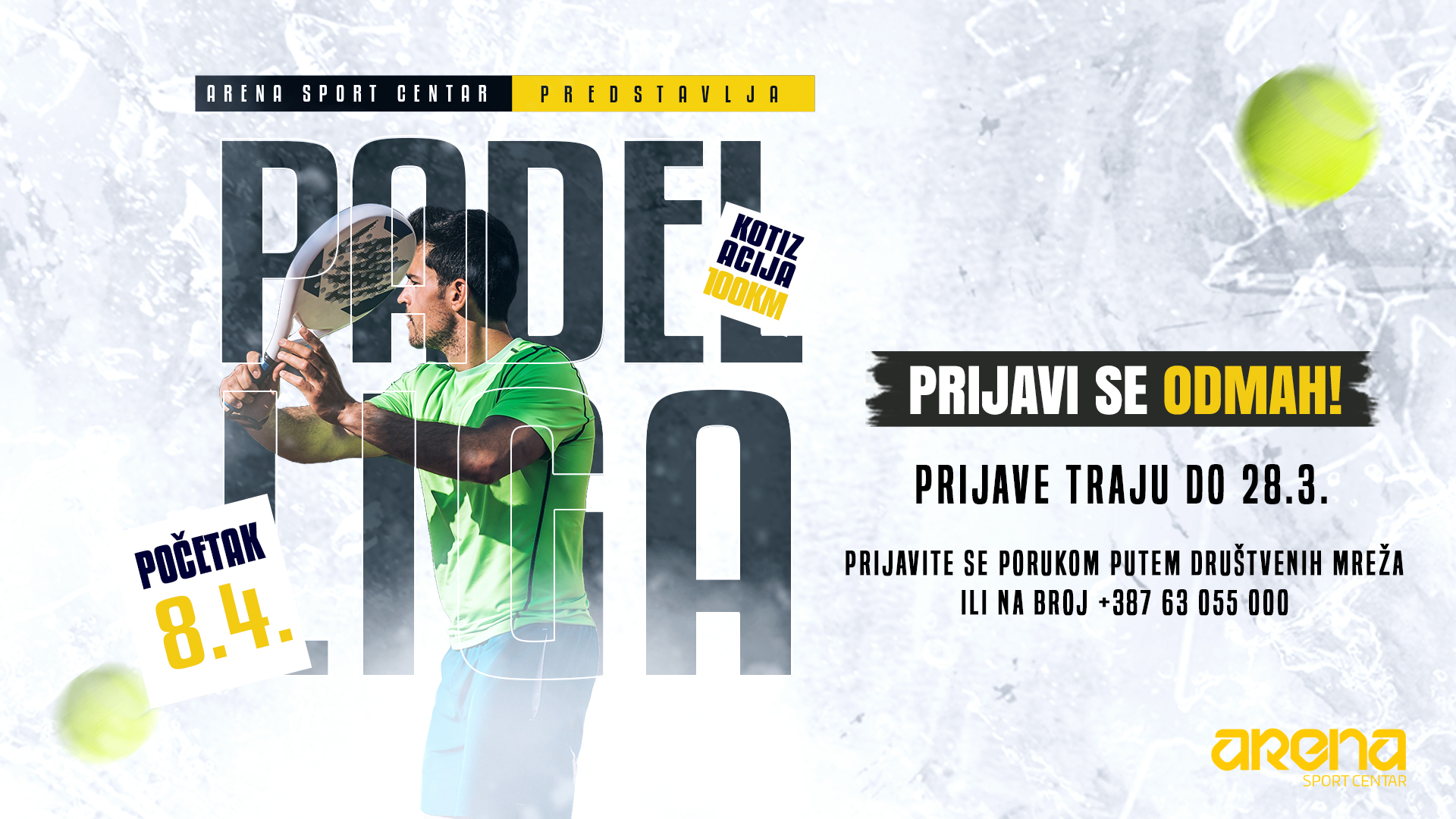 Arena Sport Centar ponosno najavljuje početak Arena PADEL lige. Ovaj dinamičan i sve popularniji sport dobiva svoje prvo natjecateljsko izdanje u Hercegovini, a prvi mečevi kreću 8. travnja.