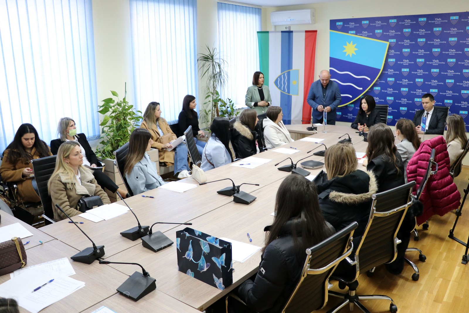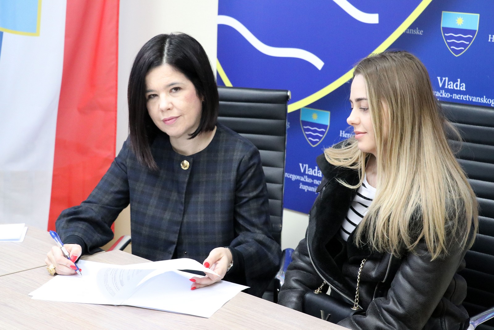 Predsjednica Vlade Hercegovačko-neretvanske županije Marija Buhač i ministar financija HNŽ-a Adil Šuta pozdravili su danas vježbenike koji su odabrani na osnovu Javnoga poziva Vlade za prijam vježbenika u županijska tijela uprave, upravne organizacije i druge službe, tijela i institucije Hercegovačko-neretvanske županije.