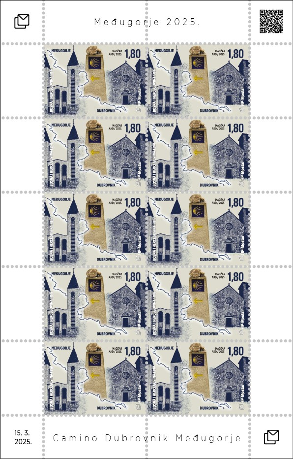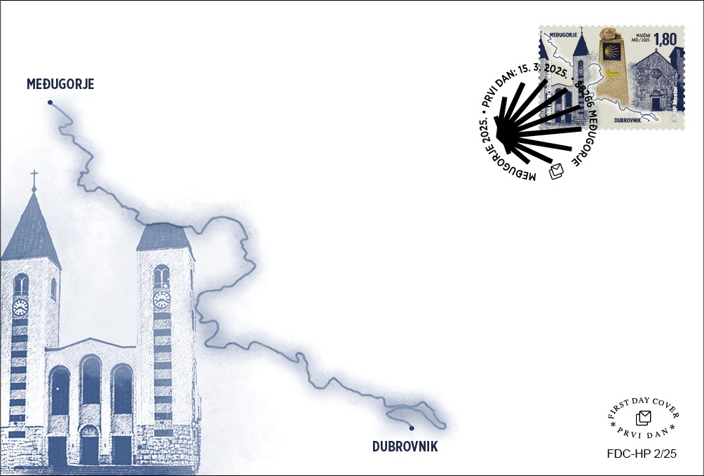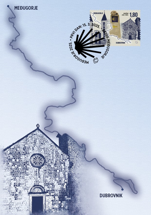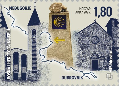 Hrvatska pošta (HP) Mostar tiskala je redovite poštanske marke „Međugorje 2025. – Camino Dubrovnik Međugorje.