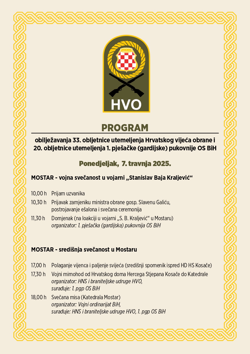 Obilježavanja 33. obljetnice utemeljenja Hrvatskog vijeća obrane i 20. obljetnice utemeljenja 1. pješačke (gardijske) pukovnije OS BiH