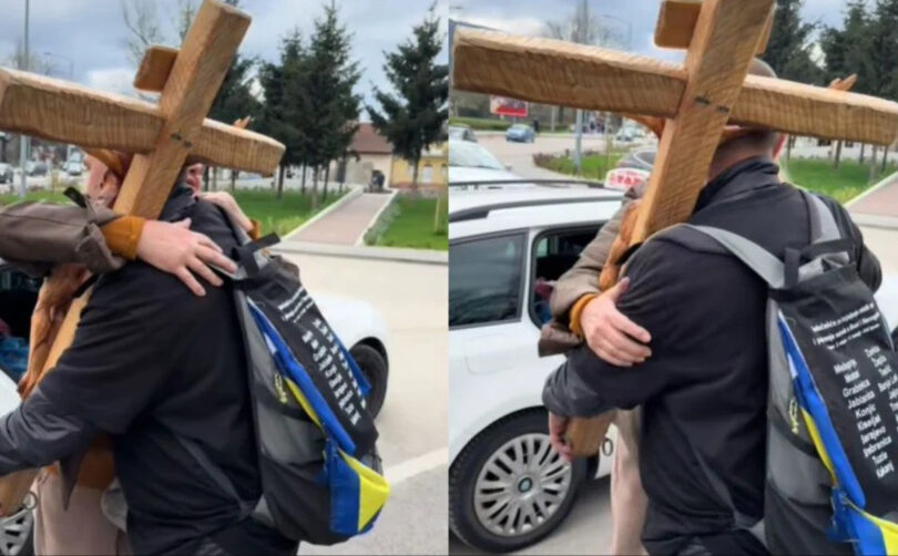 Dok smo hodali kroz centar grada, gospođa je izašla iz taksija, stala na sredinu ceste i, u suzama, bacila se Josipu u zagrljaj, zagrlivši njega i križ koji je nosio. Svi smo bili duboko dirnuti prizorom. U suzama mu se zahvaljivala što to čini za nas, objavio je Mato Topić, koji je snimio ovaj emotivni trenutak.