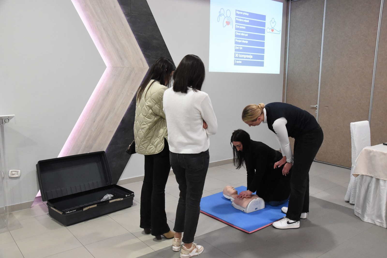 Nakon stručnog predavanja, sudionicima tribine, medicinsko osoblje demonstriralo je osnovne tehnike pružanja prve pomoći te su zainteresirani, pod stručnim vodstvom, imali priliku za praktičan trening iz pružanja prve pomoći, a tijekom cijele tribine i za postavljanje pitanja.
