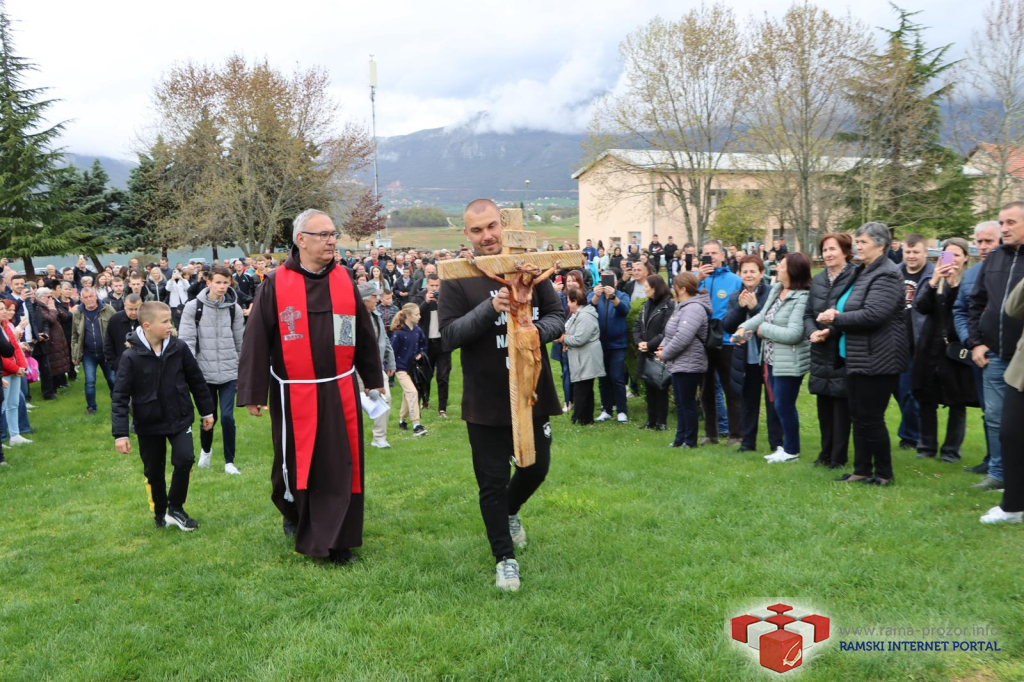 U Prozoru se Jelinić kratko zadržao gdje se pomolio s okupljenim pukom pored spomen obilježja, a zatim je nastavio svoj put prema Šćitu. Na Šćitu ga je s mnoštvom vjernika dočekao gvardijan Franjevačkog samostana Rama-Šćit, fra Andrija Jozić. Ramske Čuvarice izvele su nekoliko korizmenih napjeva.