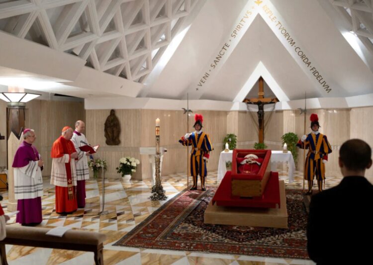 Papa Franjo izričito je naveo da želi jednostavan pogreb bez velikih ceremonija, raskošnih spomenika i skupih obilježja. Želio je biti pokopan direktno u zemlju, u jednostavnoj grobnici sličnoj onoj njegovog prethodnika, pape Benedikta XVI. Ova želja naglašava njegovu dosljednu poniznost i predanost jednostavnom načinu života koji je promovirao tijekom cijelog svog pontifikata.