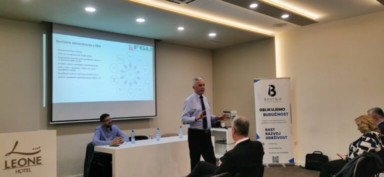 Udruga gospodarstvenika Brotnjo nastavila je s praksom organiziranja korisnih i informativnih događanja kako za svoje članove tako i za sve ostale gospodarstvenike, ali i za sve zainteresirane građane s područja općine Čitluk, te je u tom duhu upriličeno predavanje gospodina Željka Obradovića, direktora Federalne uprave za geodetske i imovinsko-pravne poslove. Predavanje je održano u hotelu Leone u Bijakovićima i okupilo je lokalne gospodarstvenike zainteresirane za aktualna pitanja iz područja upravljanja nekretninama i zemljišno-knjižnih evidencija.