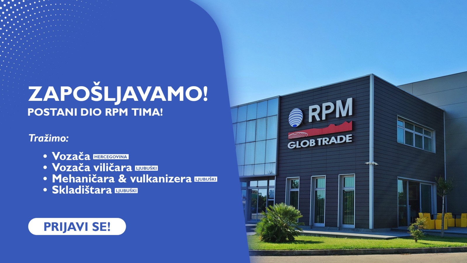 Zbog povećanja obima posla, RPM Glob Trade d.o.o. raspisuje natječaj za više radnih mjesta