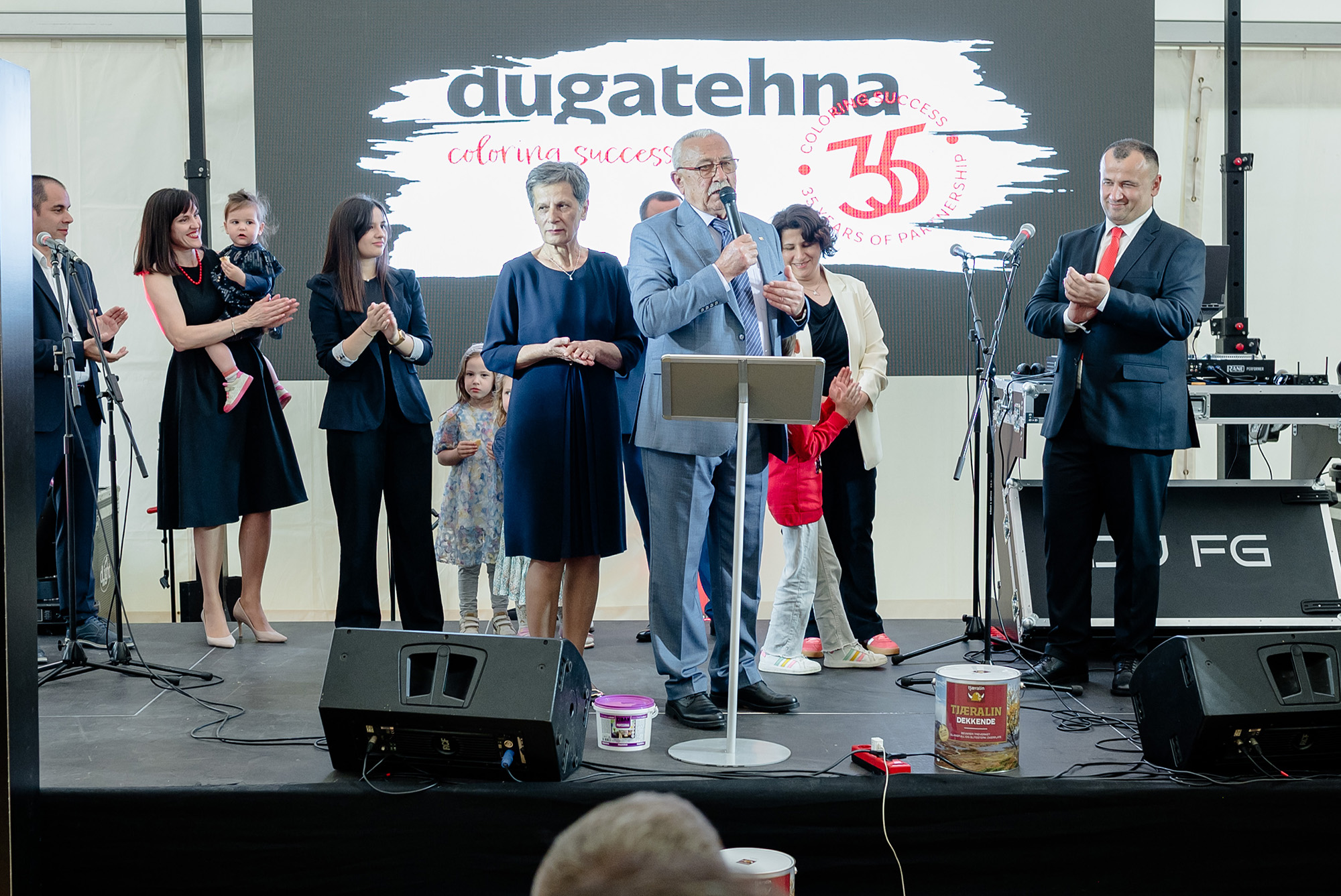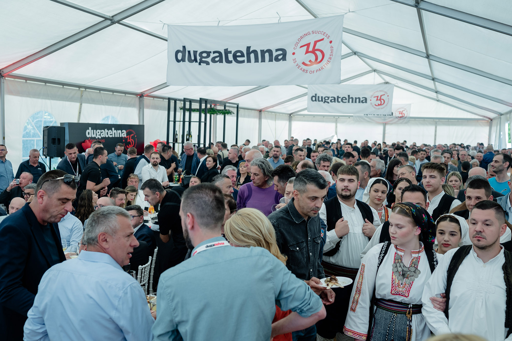 U svečanom i inspirativnom ozračju, 16. svibnja 2025. u održana je proslava povodom 35 godina uspješnog rada Duga-tehne d.o.o, jedne od vodećih regionalnih tvrtki u industriji boja i fasada. Događaju je prisustvovalo više od 1.000 uzvanika, među kojima su bili brojni poslovni partneri, kupci, korisnici, predstavnici javnog, sportskog, obrazovnog, kulturnog i političkog života, lokalna zajednica, dugogodišnji djelatnici i prijatelji tvrtke.