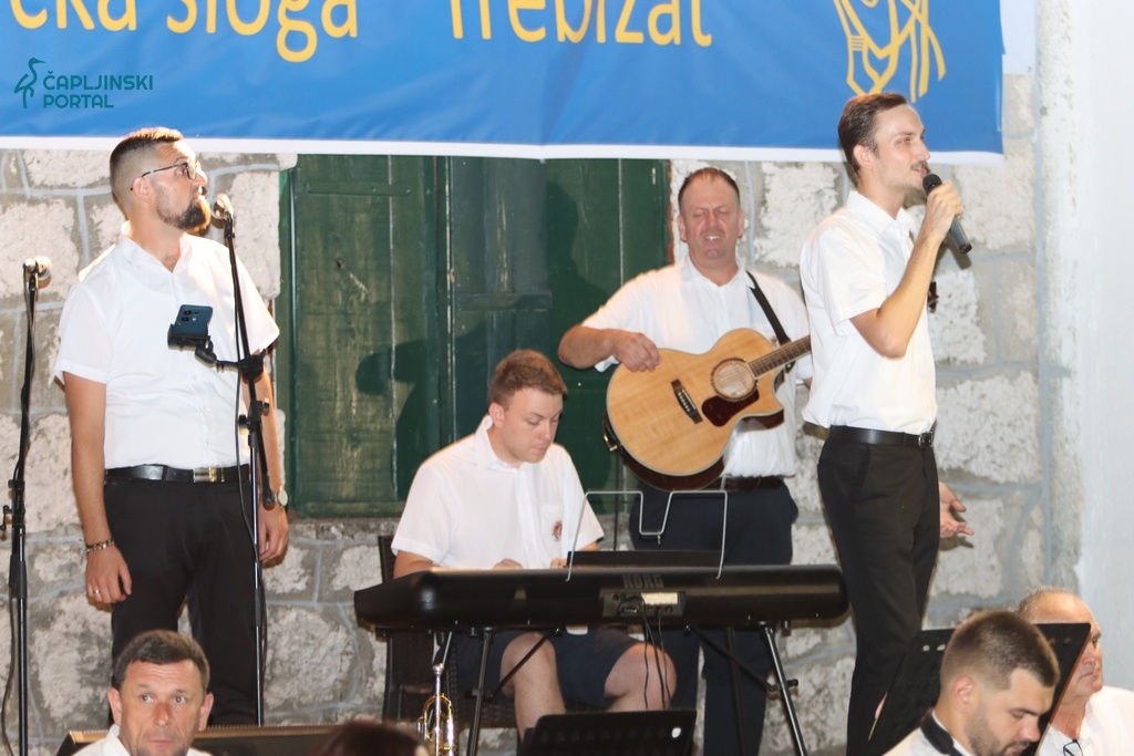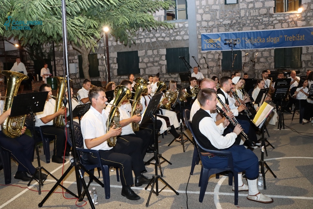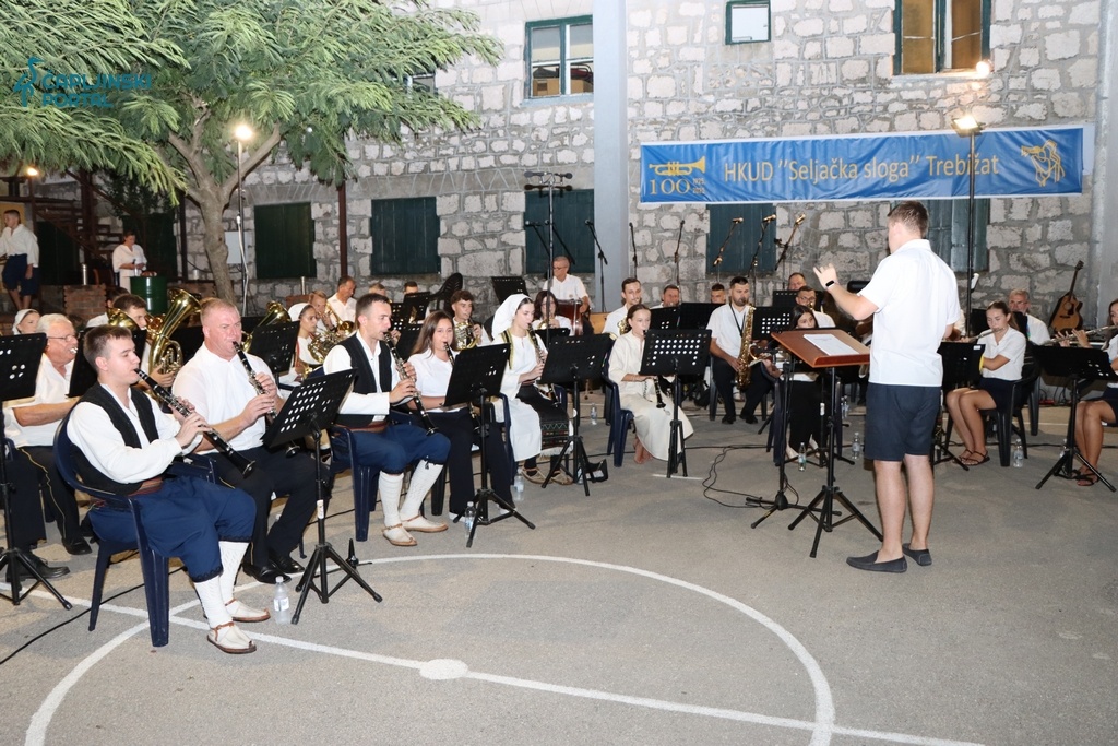 Na pozornici su se potom izmjenjivali mali i veliki folkloraši, vraćajući gledatelje u prošla vremena kroz izvorne plesove i nošnje. Puhački orkestar društva izveo je nekoliko prepoznatljivih skladbi, a posebno su se istaknuli solisti Ivan i Krešo Sušac uz instrumentalnu pratnju Filipa i Mire. Muška klapa Trebižat unijela je snažnu mušku vokalnu energiju, dok je puhački orkestar dodatno podigao atmosferu. U dvorištu Doma kulture mirisao je domaći toć, pripremljen za sve posjetitelje, a ispred pozornice nije bilo slobodnog mjesta. Stariji su se prisjećali, mlađi su učili, a svi zajedno slavili stotinu godina kulturnog stvaralaštva u Trebižatu.