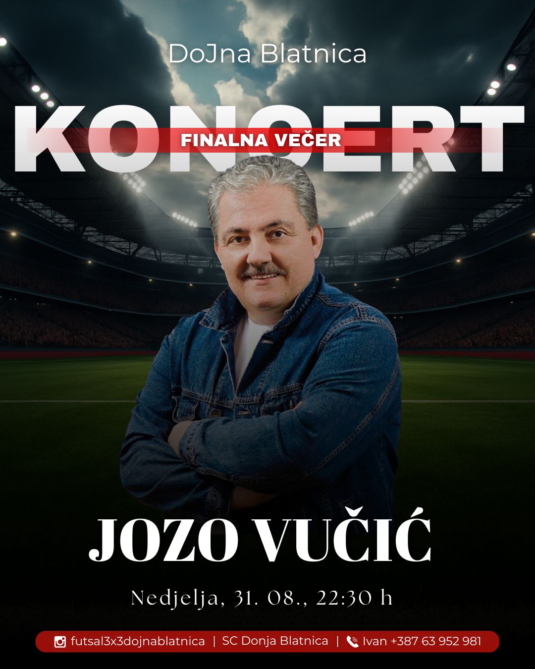 Finalna večer donosi koncert popularnog pjevača Joze Vučića, koji će nastupiti u nedjelju, 31. kolovoza, u 22:30 h. Ovaj koncert zasigurno će biti vrhunac turnira, pa ne propustite priliku uživati u sjajnoj atmosferi i glazbi!