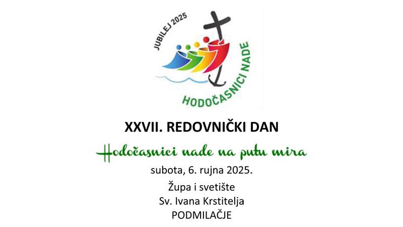 Redovnički dan u Bosni i Hercegovini, 27. po redu, održat će se u subotu 6. rujna 2025. u župi i svetištu sv. Ivana Krstitelja u Podmilačju pod geslom „Hodočasnici nade na putu mira“, izvijestili su iz Konferencije viših redovničkih poglavara i poglavarica Bosne i Hercegovine.