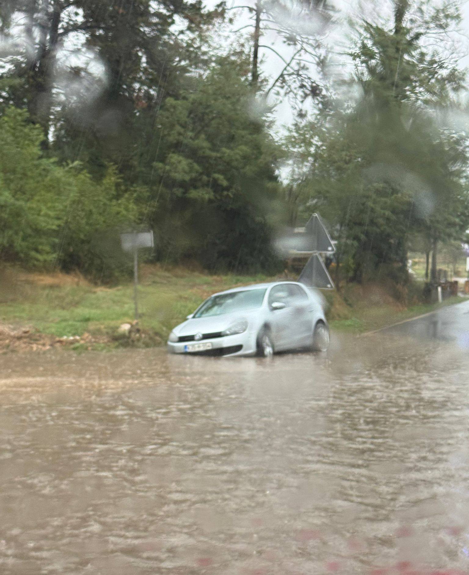 Na dionici ceste u Potpolju, kod noćnog kluba Bumerang, zbog jakih oborina, došlo je do stvaranja ogromne količine vode, što otežava kretanje vozila.