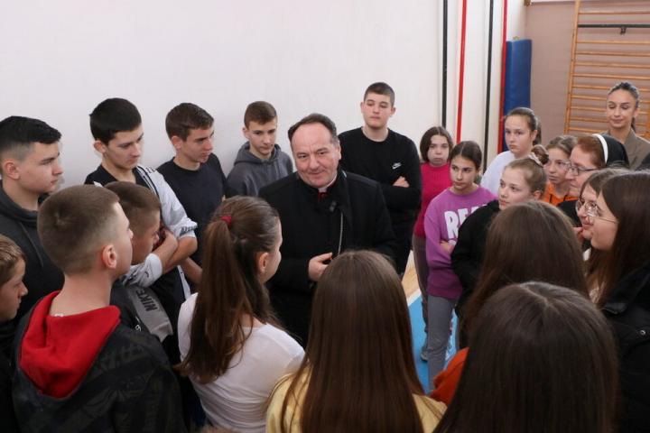Dragi učenici, vi ste budućnost naše domovine, naše Crkve i našega naroda. Molim vas da u školi ne tražite samo ocjene i uspjeh, nego i prijateljstvo, istinu i dobrotu. Ne zaboravite da ste ljubljeni: od svojih roditelja, učitelja, ali nadasve od Isusa Krista, koji vas zove po imenu i ima plan za vaš život. Upoznajte Ga, tražite Ga, i ne bojte se pitati o Njegovoj volji. Neka vam vjeronauk i život u vjeri pomognu u tom traženju, uz pomoć Duha Svetoga koji govori u tišini vašeg srca.