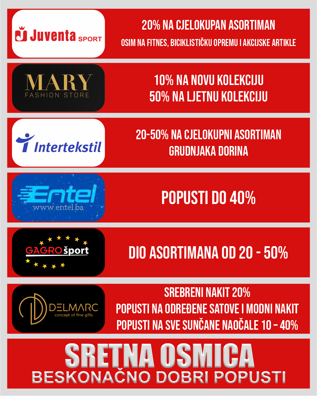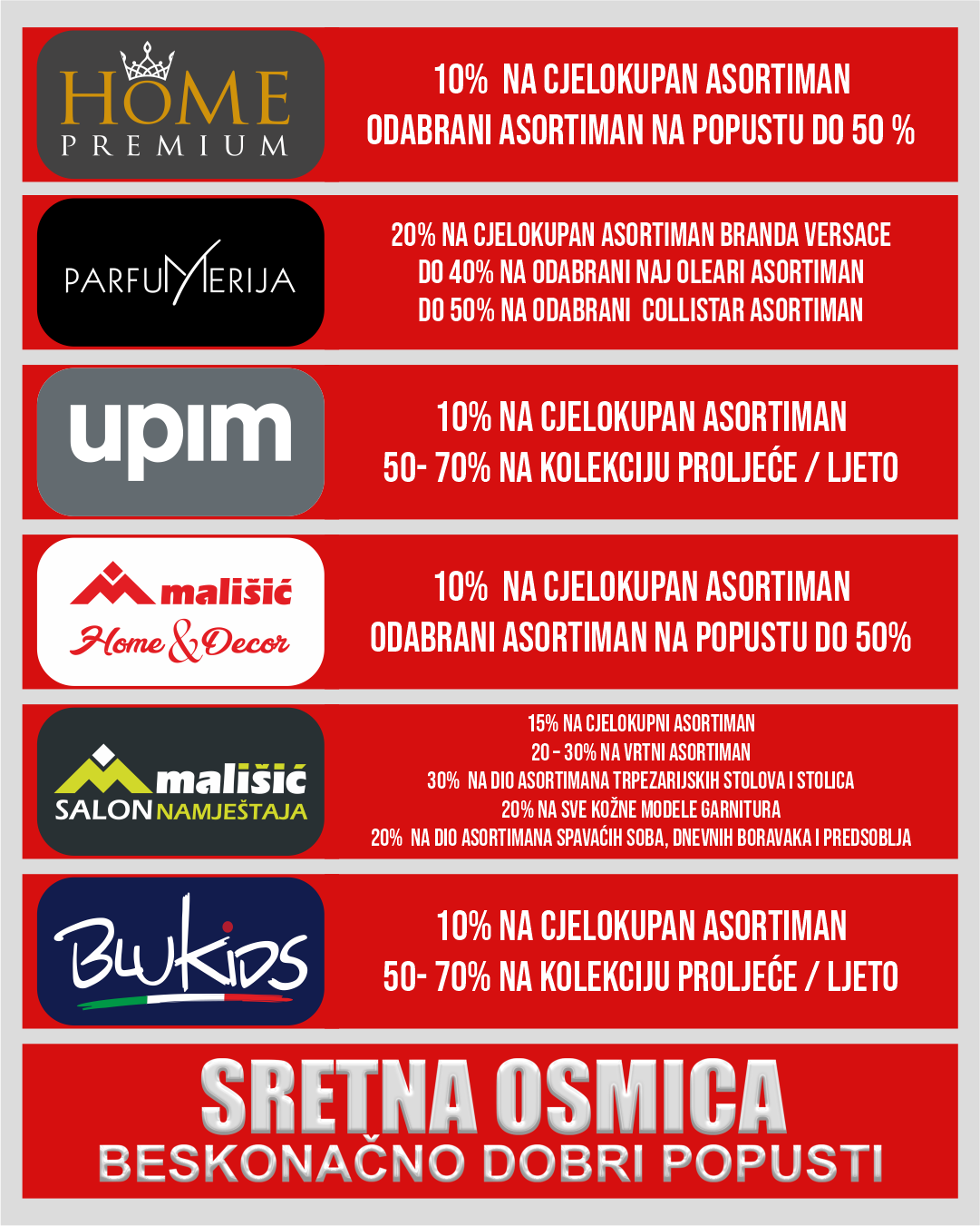 Popusti koji Vas očekuju za Sretnu Osmicu: