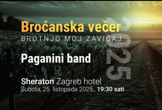 Broćanska večer će se održati u subotu, 25. listopada 2025. godine, u hotelu Sheraton u Zagrebu, s početkom u 19:30 sati.