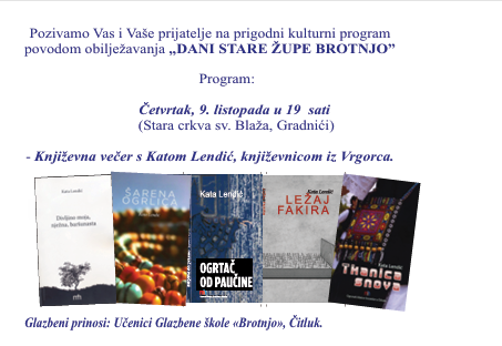 Ogranak Matice Hrvatske u Čitluku poziva sve zainteresirane na prigodni kulturni program koji se održava povodom obilježavanja manifestacije “DANI STARE ŽUPE BROTNJO”