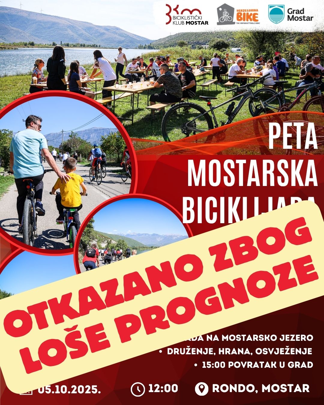Vremenska prognoza je jako loša, a svima nam je u interesu da nas se okupi što veći broj i da uživamo u lijepom biciklističkom druženju. – stoji u objavi na Facebooku.