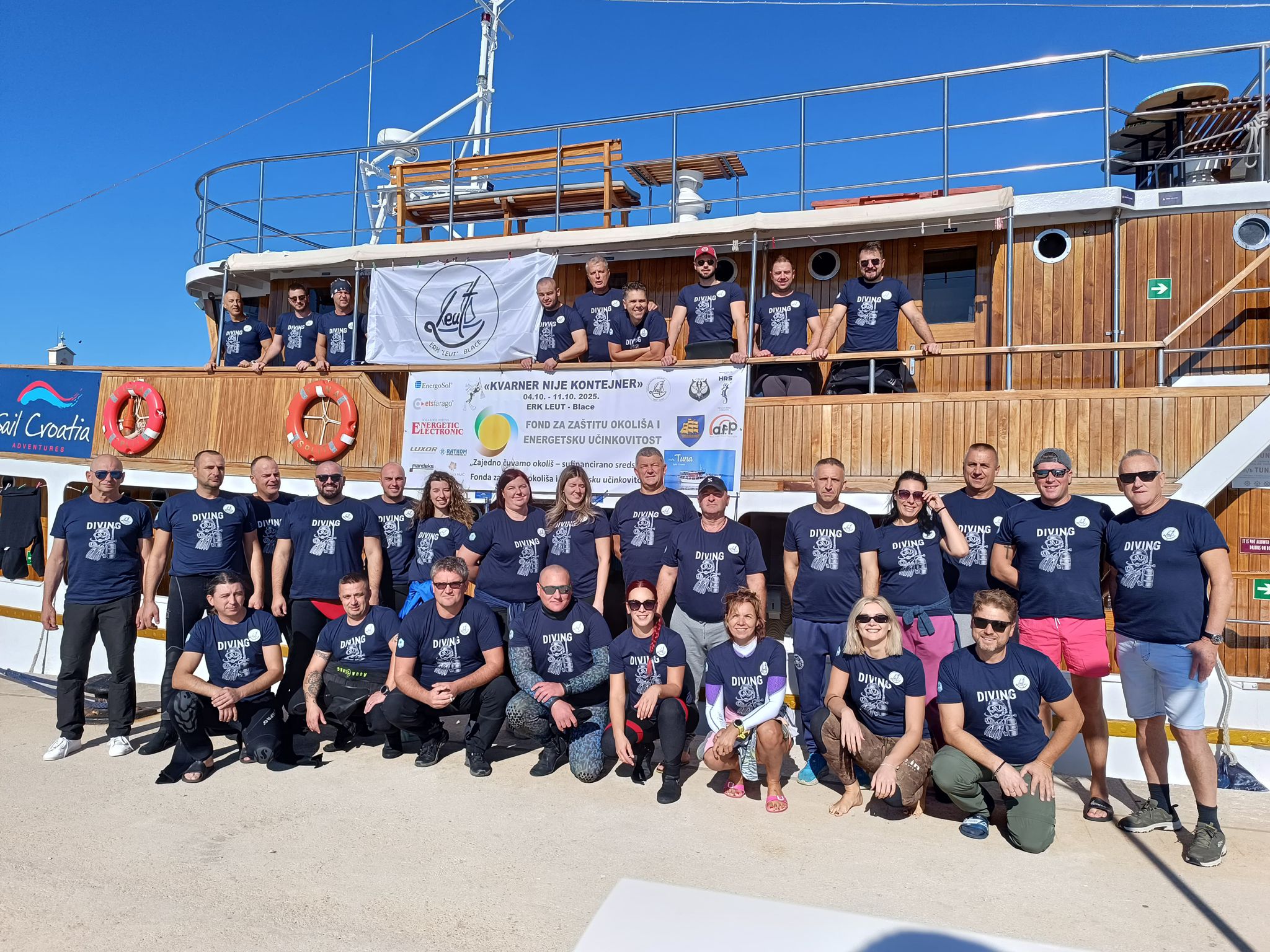 Na brodu Sail Croatia, koji je služio kao logistička baza i prijevozno sredstvo, okupilo se više od 30 ronilaca i volontera. Svi su nosili majice s natpisom “Diving for Clean Adriatic”, šaljući snažnu poruku kako je odgovornost prema moru – zajednička obveza svih nas.