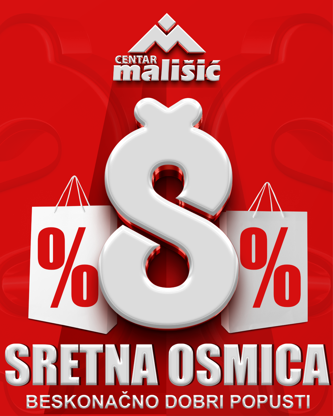 Ove SRIJEDE,08.listopada ne propustite prigodu posjetiti prodajni centar Mališić Međugorje jer pred nama je još jedna Sretna Osmica, dan odličnih akcijskih popusta i pogodnosti.