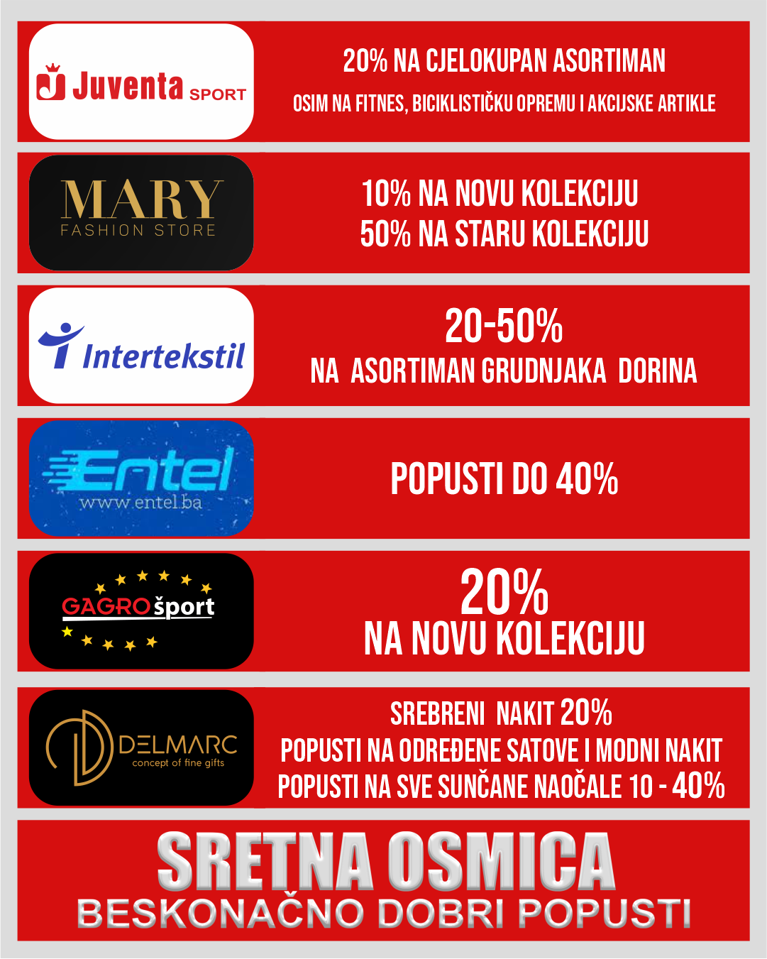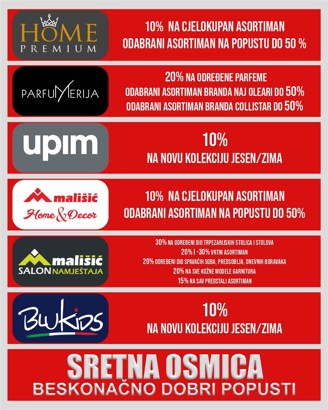 Popusti koji Vas očekuju za Sretnu Osmicu: