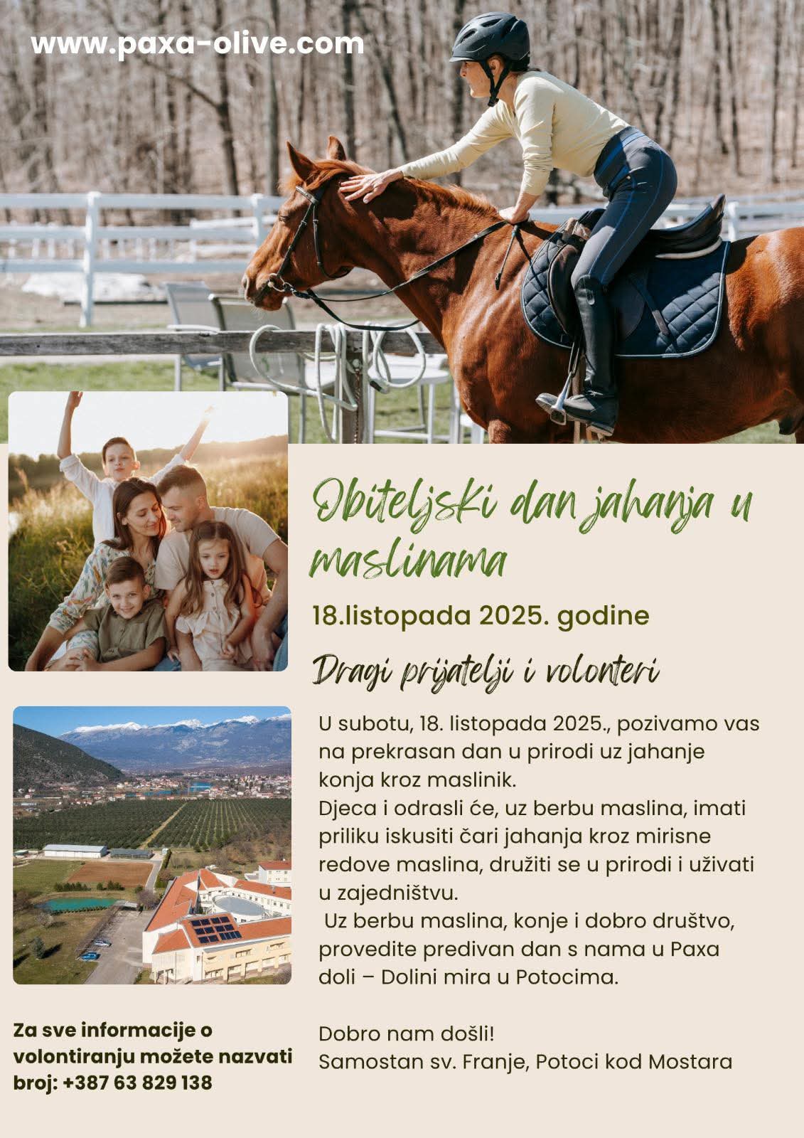 U subotu, 18. listopada 2025. godine, održat će se poseban obiteljski događaj – obiteljski dan jahanja u maslinama.