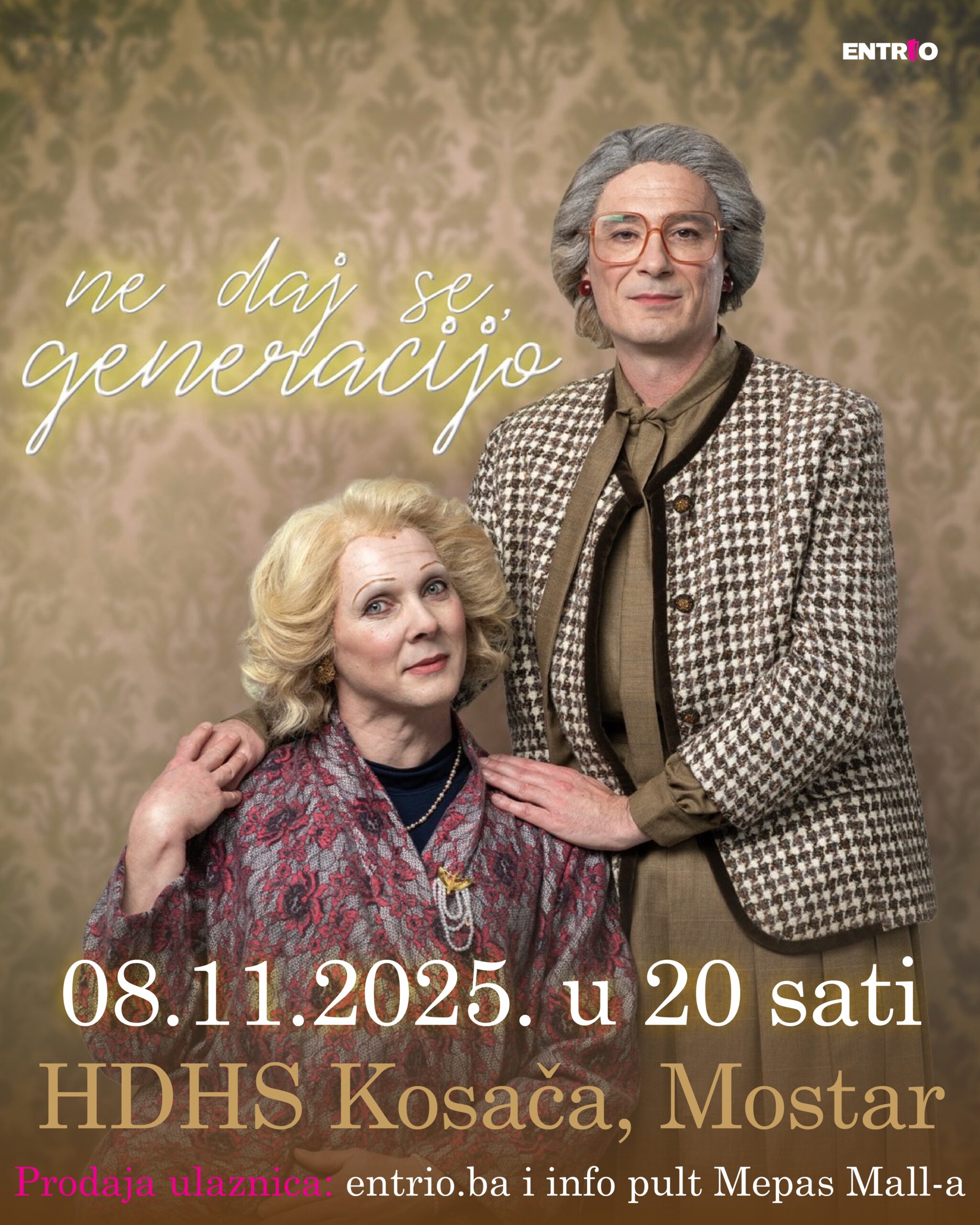 Bosansko narodno pozorište Zenica i Hrvatski dom Herceg Stjepan Kosača u Mostaru bit će domaćini izvedbe nagrađivane komedije „Ne daj se, generacijo“, autora Alena Muratovića, u produkciji Pozorišta mladih Sarajevo i Udruženja Moje pozorište.