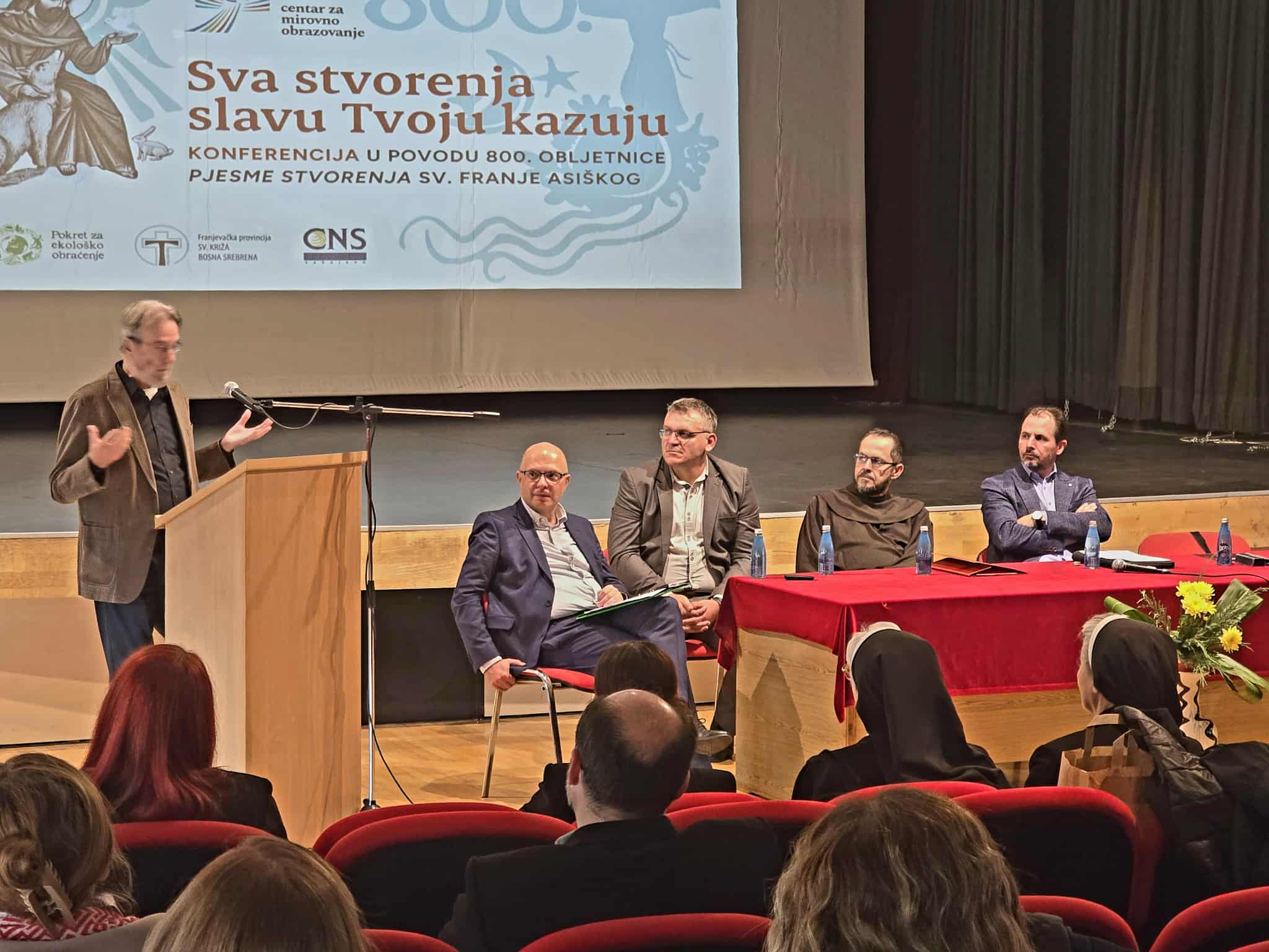 U Dvorani sv. Franje Asiškog na Kovačićima u Sarajevu je od 21. do 22. listopada 2025. održana konferencija Sva stvorenja slavu Tvoju kazuju u povodu 800. obljetnice Pjesme stvorenja sv. Franje Asiškog u organizaciji Centra za mirovno obrazovanje – CMO. Domaćin konferencije bio je fra Zdravko Dadić, provincijal Franjevačke provincije Bosne Srebrene, a partnersku potporu organizaciji konferencije pružio je uz to i Centar za napredne studije – CNS. U vremenu radikalne ugroženosti nastanjivosti planeta Zemlje, ali i sve brutalnijeg razaranja okoliša u našoj domovini s pogubnim ekološko-socijalnim posljedicama, glavni cilj konferencije bio je svečanim obilježavanjem 800. obljetnice Pjesme stvorenja sv. Franje Asiškog doprinijeti odlučnijem preuzimanju (su)odgovornosti vjerskih zajednica za zaštitu okoliša u Bosni i Hercegovini, ali i čitavoj regiji.