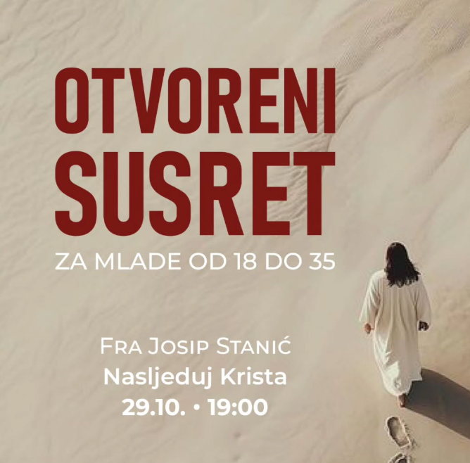 U srijedu, 29. listopada, zajednica Očevo srce vas poziva na poseban susret, na kojem će gost biti fra Josip Stanić, koji će govoriti o temi “Kako nasljedovati Krista“.