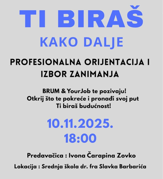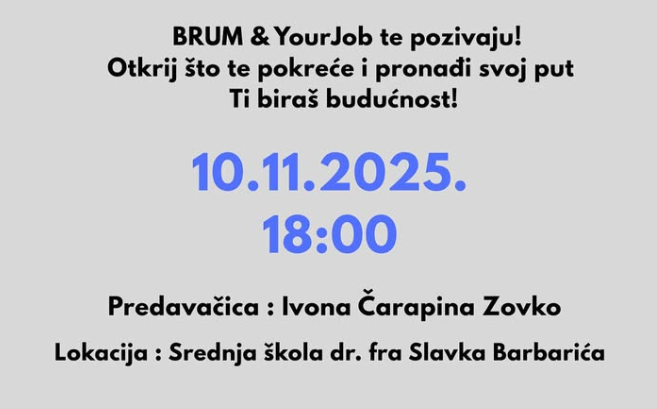 BRUM i YourJob: Predavanje na temu “Profesionalna orijentacija i izbor zanimanja”