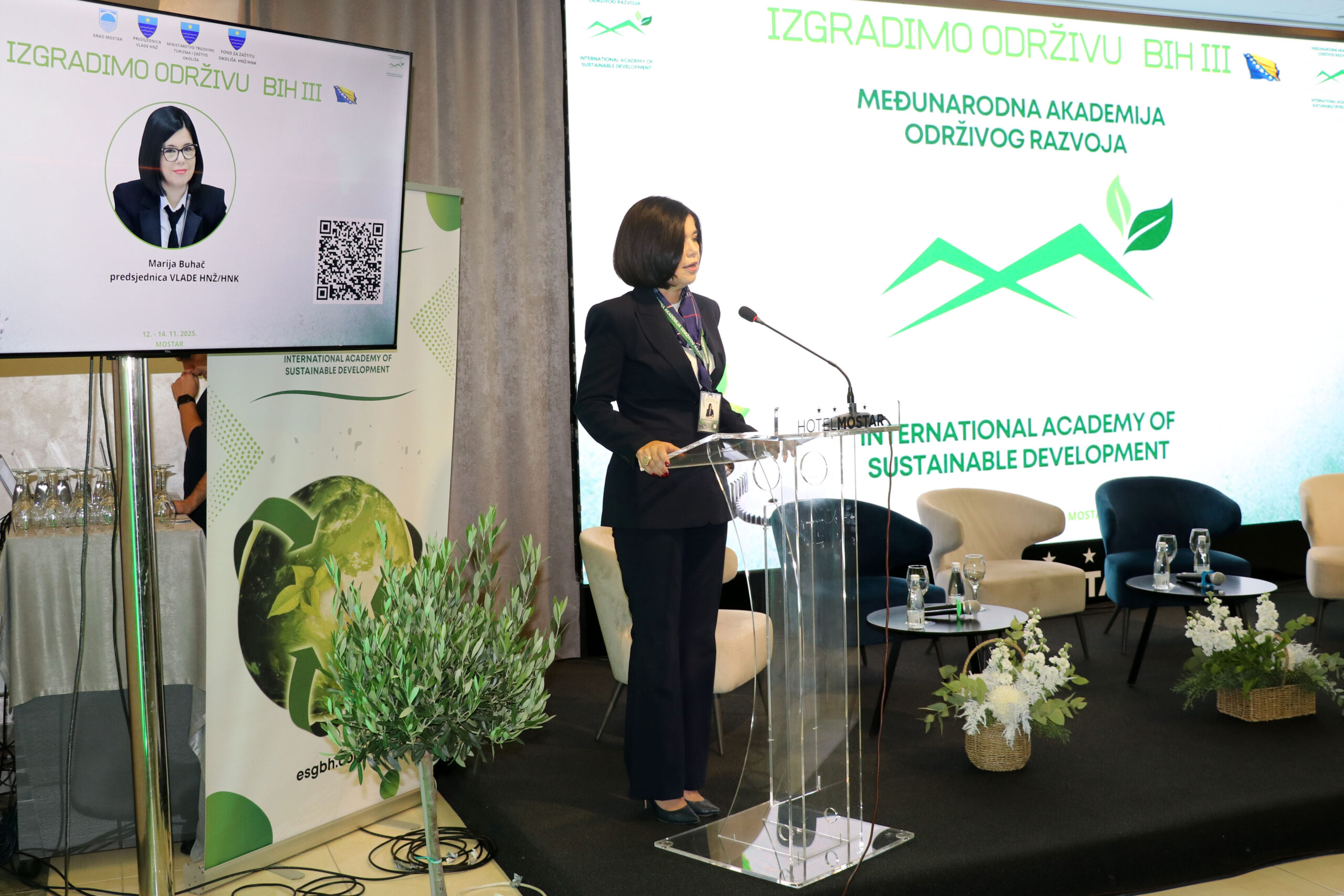 U organizaciji Međunarodne akademije održivoga razvitka, a u suradnji s Vladom Hercegovačko-neretvanske županije, Fondom za zaštitu okoliša HNŽ-a, Ministarstvom trgovine, turizma i zaštite okoliša HNŽ-a i Gradskim poglavarstvom Mostara danas je u hotelu Mostar otvorena 3. međunarodna konferencija ”Izgradimo održivu BiH”. Istaknuvši kako su upravljanje i gospodarenje otpadom, prekogranična suradnja, politike održivoga razvitka i upravljanja okolišem, zelena tranzicija, energetska učinkovitost, kružna ekonomija, energenti i umjetna inteligencija ključnim temama Konferencije, u pozdravnomu govoru nazočnima predsjednica Vlade HNŽ-a Marija Buhač poručila je kako i ovo zbivanje svjedoči nastojanje uvijek biti ukorak s vremenom.