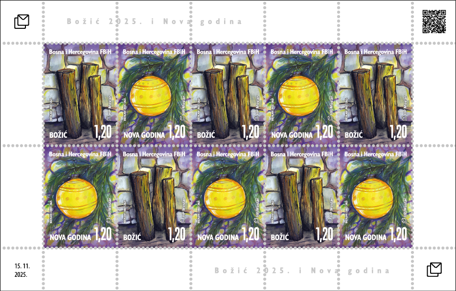 Hrvatska pošta (HP) Mostar tradicionalno tiska izdanje poštanskih maraka „Božić i Nova godina“. Motiv božićne marke je podsjećanje na tradiciju unošenja badnjaka, a novogodišnja marka podsjeća na kićenje božićne jelke ukrasnim kuglicama.