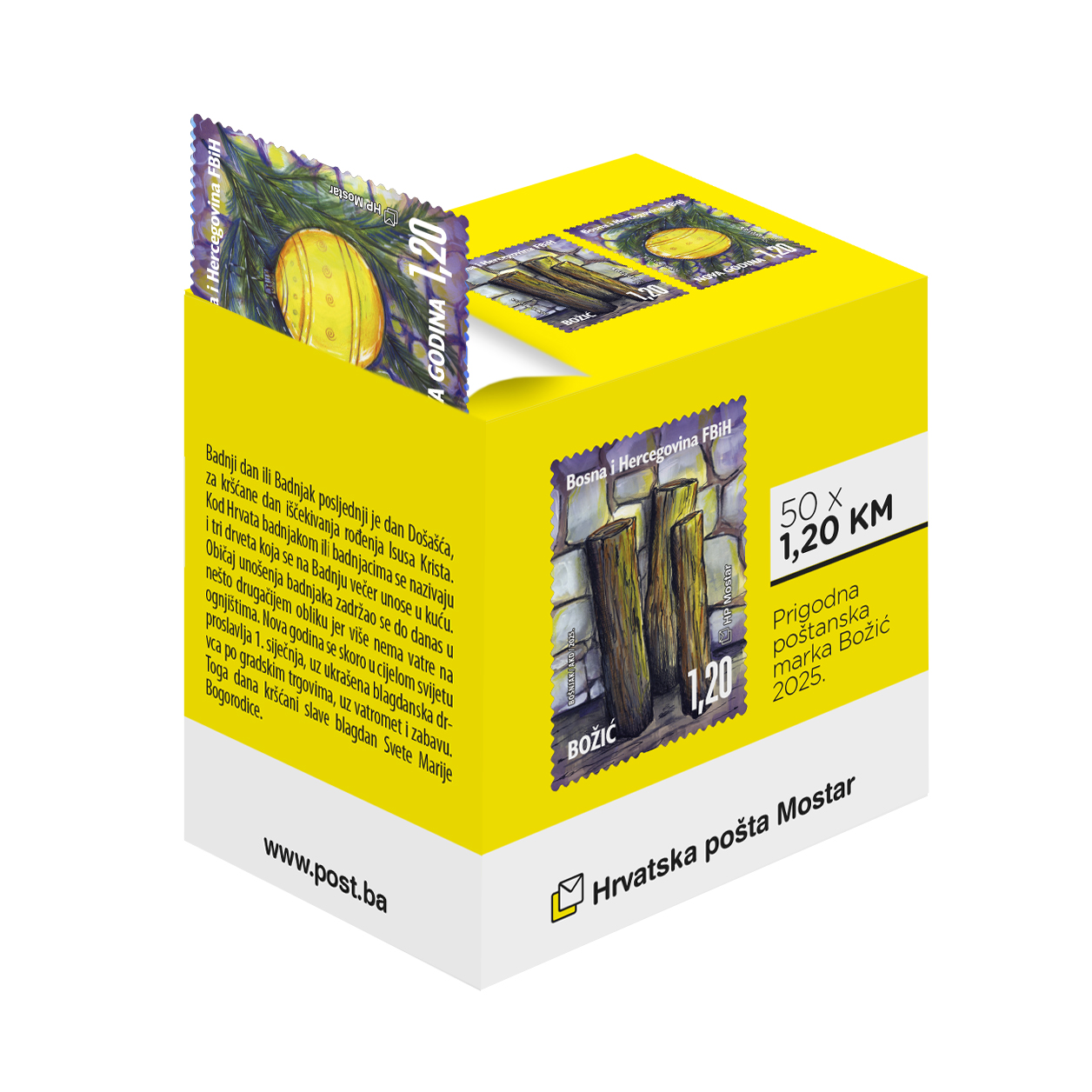 Hrvatska pošta (HP) Mostar prigodnim poštanskim markama tradicionalno obilježava Božić i Novu godinu. Osim klasičnih maraka tiskanih u arku, ove marke tiskane su i kao samoljepljive u rolama pakiranim u prigodne kutije od po 100 komada (50 s božićnim i 50 s novogodišnjim motivom).