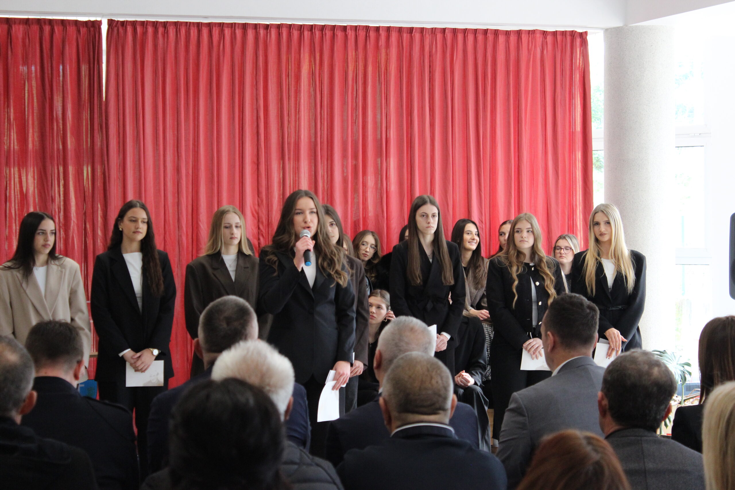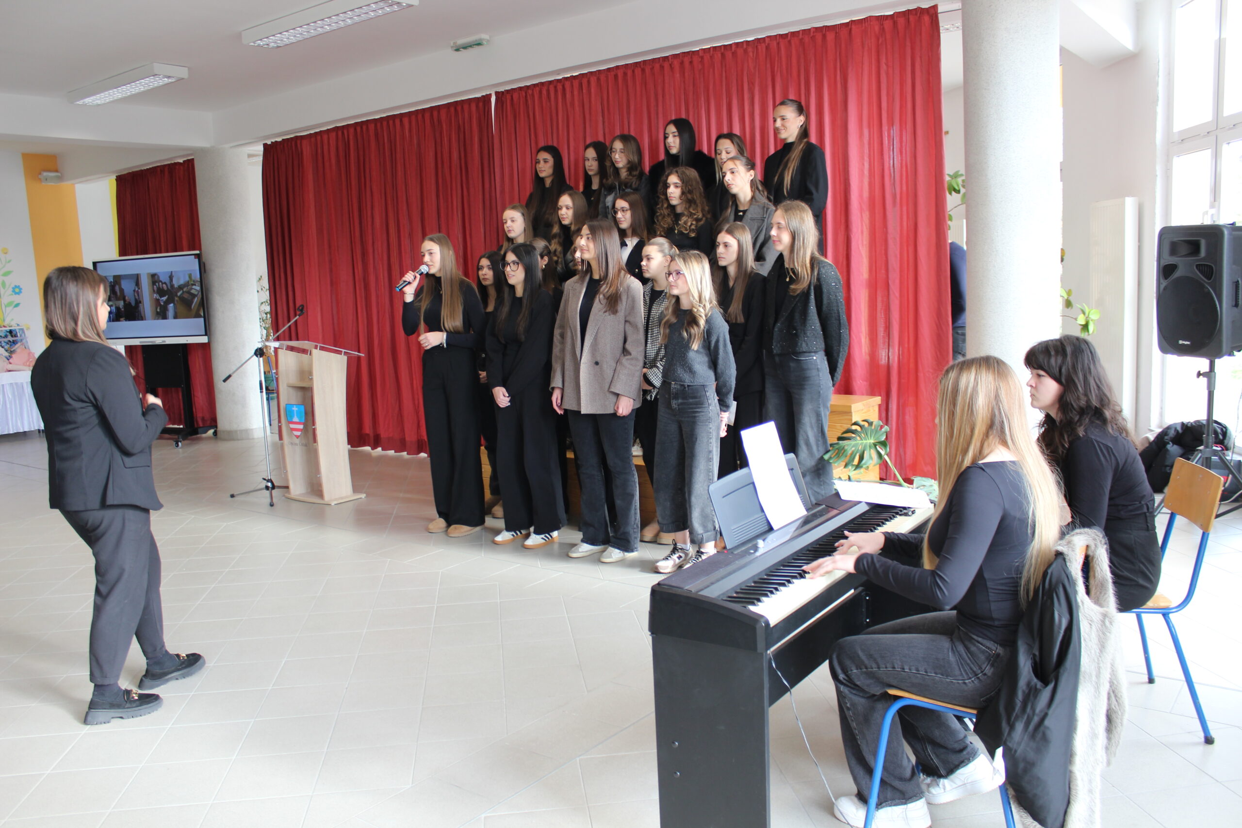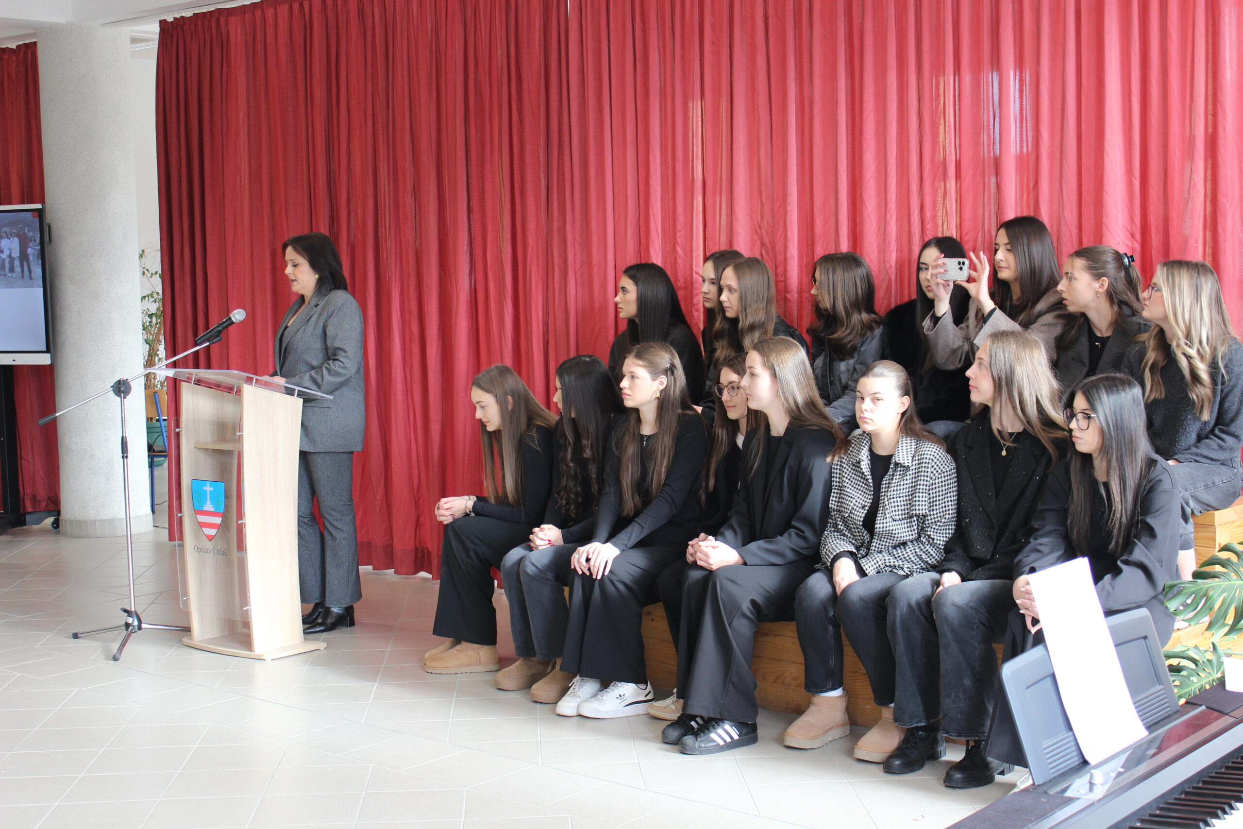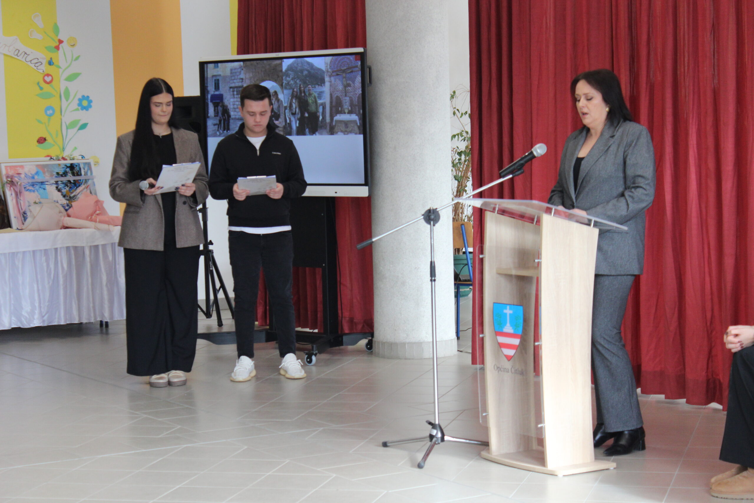 Svečanost je započela himnom “Lijepa naša”, a potom je uslijedila pjesma „Zaustavi se vjetre“ u izvedbi školske glazbene sekcije pod vodstvom prof. Magdalene Jurić, koja je dobila veliki pljesak publike.