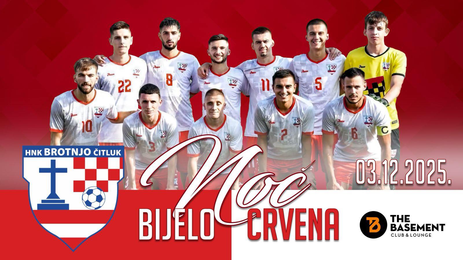 HNK Brotnjo organizira tradicionalnu donatorsku večer „Bijelo – Crvena noć“, koja će se održati u srijedu, 3. prosinca 2025. godine, u The Basement Clubu s početkom u 19 sati.