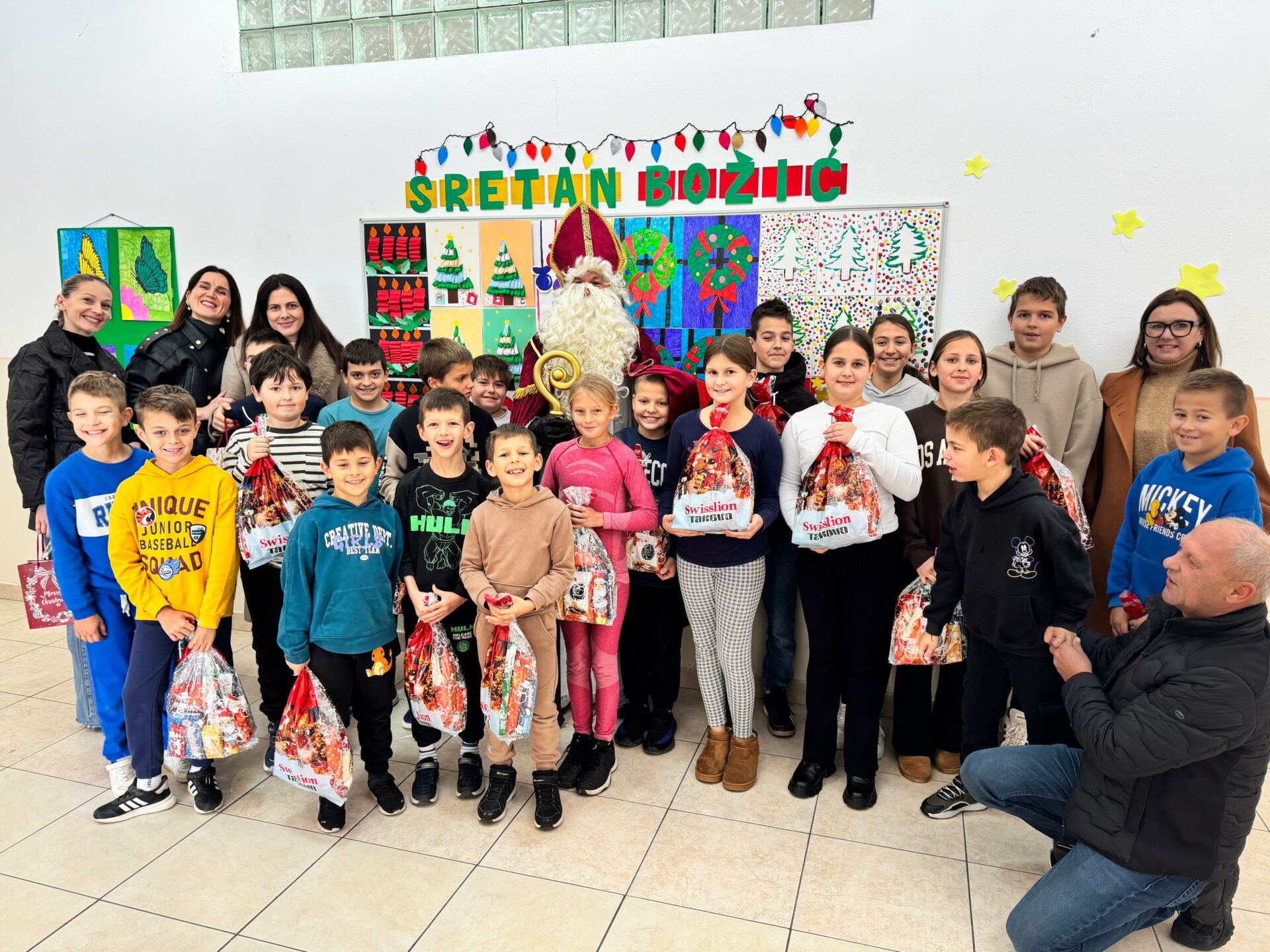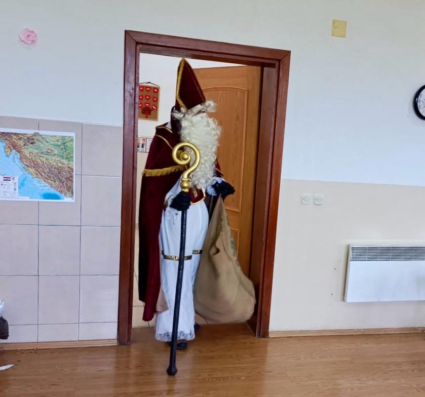 Djeca su ga dočekala s veseljem, a on ih je nagradio toplim riječima i prigodnim poklonima.