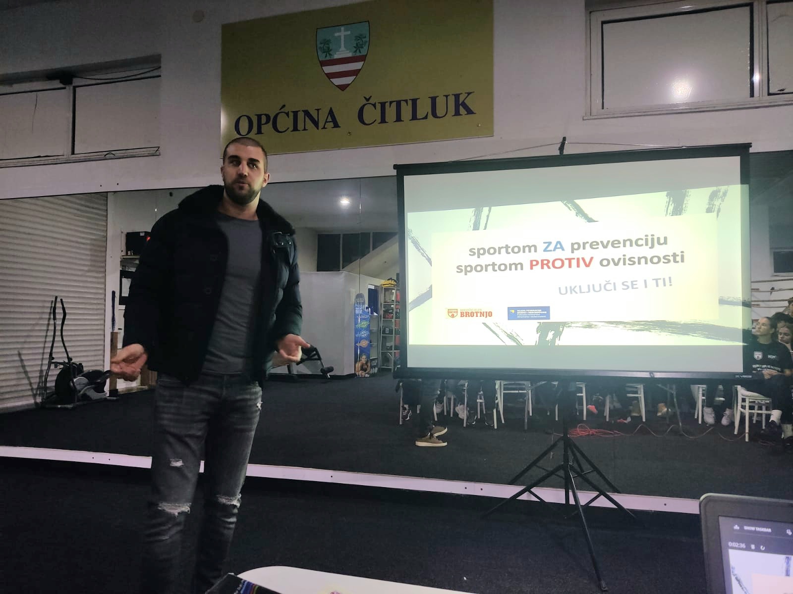 Sinoć je u prostorijama Boksačkog kluba “Brotnjo“ u Čitluku službeno završio projekt pod nazivom „Sportom ZA prevenciju – sportom PROTIV ovisnosti“, koji je započeo u listopadu ove godine. Projekt je organiziran kako bi se djeca i mladi s područja općine Čitluk educirali o bolestima ovisnosti, načinima prevencije te kako bi promovirali sportske aktivnosti kao platformu koja pomaže pri prevenciji destruktivnog izražavanja i ponašanja te djeci i mladima pomažu pri pravilnom rastu, razvoju i samoj socijalizaciji.