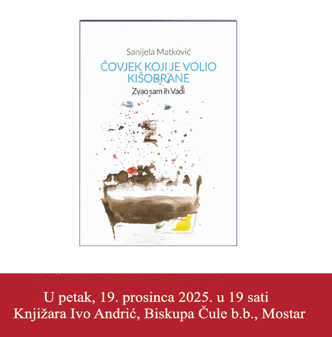U sklopu XXXV. tradicionalne kulturno-duhovne manifestacije Božićni susret s Maticom u Brotnju, Ogranak Matice hrvatske u Čitluku poziva Vas na predstavljanje novog romana “Čovjek koji je volio kišobrane” autorice Sanijele Matković.