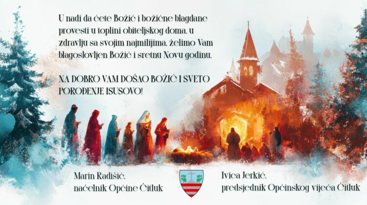U povodu nadolazećih božićnih i novogodišnjih blagdana, načelnik općine Čitluk Marin Radišić i predsjednik Općinskog vijeća Čitluk uputili su čestitku u kojoj su Broćankama, Brotnjacima i svim ljudima dobre volje poželjeli da Božić i božićne blagdane provedu u toplini obiteljskog doma, u zdravlju sa svojim najmilijima.