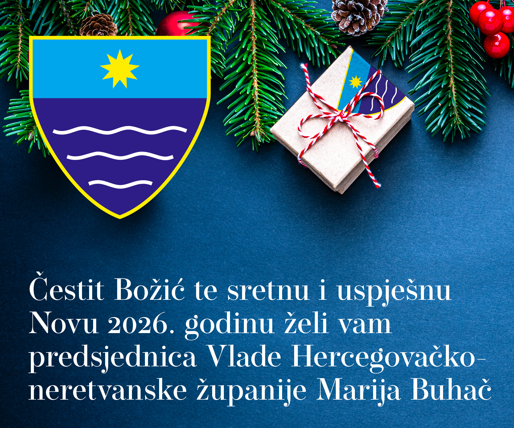 Predsjednica Vlade Hercegovačko-neretvanske županije Marija Buhač svekolikomu je katoličkom puku zaželjela čestit, miran i od Boga blagoslovljen Božić, zaželjevši svim žiteljima BiH sretnu i uspješnu novu 2026. godinu.